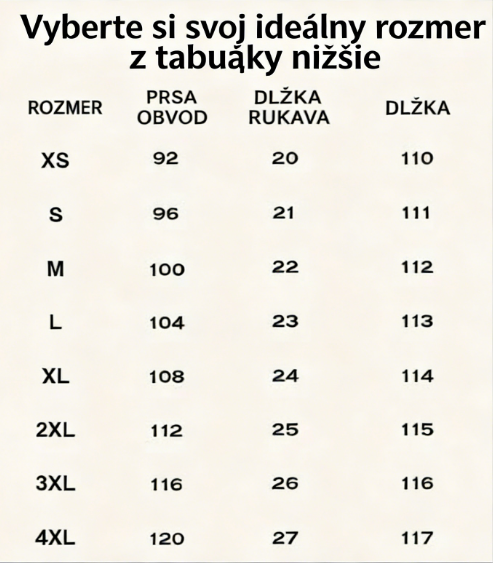 - Dostupné veľkosti: XS, S, M, L, XL, 2XL
